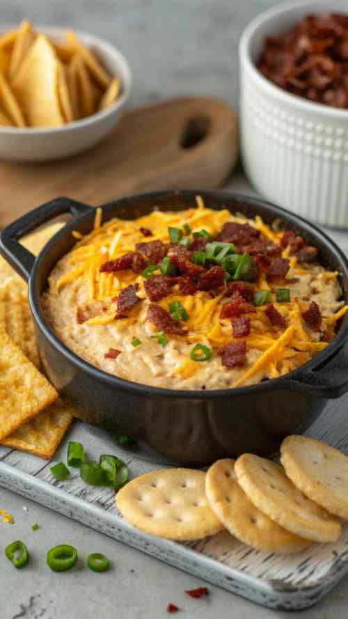 This dip is like having a baked potato without the work! Creamy, cheesy, and full of crispy bacon flavor (using turkey bacon if you want), it’s a crowd favorite.