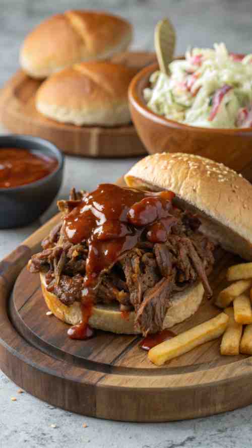This one gives total BBQ vibes without needing a grill. The beef soaks up the smoky-sweet BBQ sauce and is perfect for sandwiches.