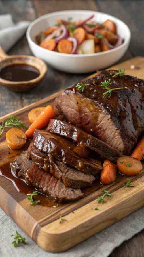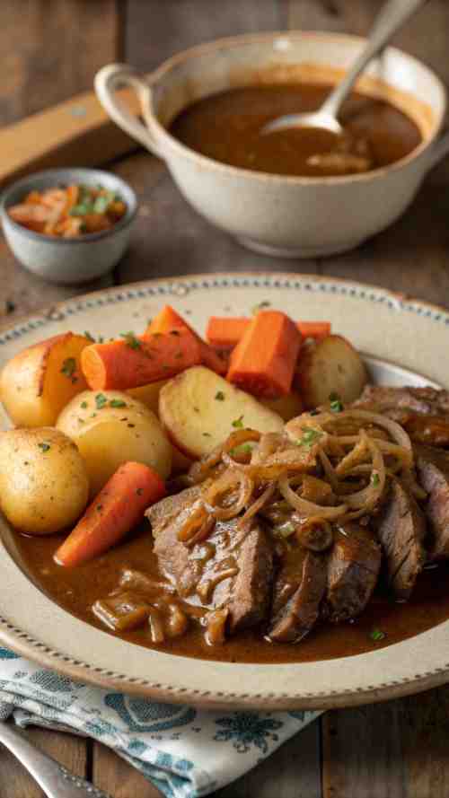 Ah, the good ol’ classic. This is the pot roast that tastes like childhood—tender beef, soft potatoes, and carrots soaking up all the goodness. It’s warm, cozy, and honestly just makes the house smell amazing. Perfect for a Sunday dinner when you don’t feel like standing over the stove for hours.