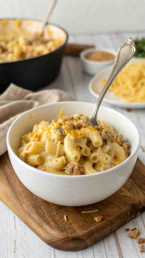 Crockpot Ground Turkey Creamy Mac and Cheese | Easy Ground Turkey Recipes For Dinner, Cozy Fall Comfort Food Idea