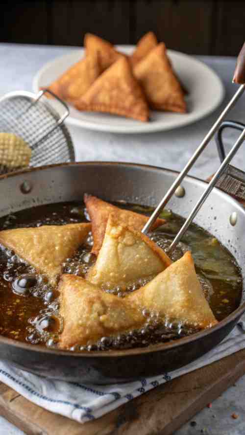 If your samosas are absorbing too much oil, your oil temperature is likely too low. Make sure the oil is heated to 350°F (175°C) before frying. Also, avoid overcrowding the pan, which can drop the temperature.