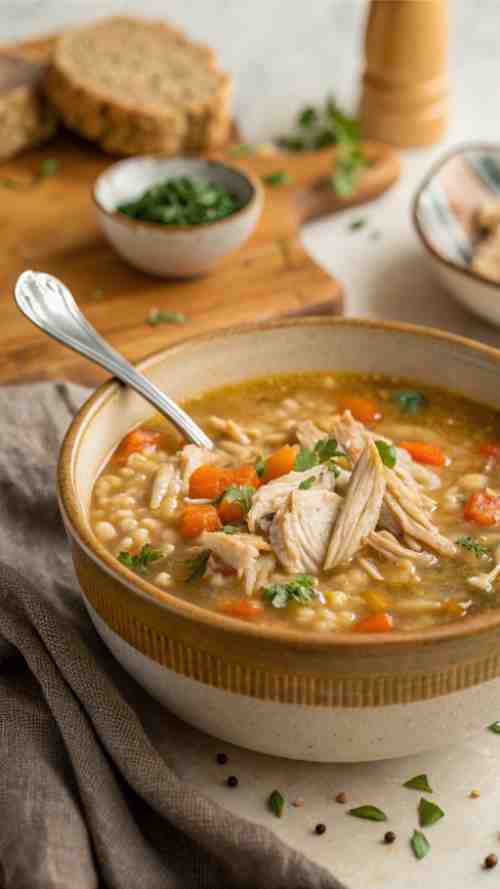 Yes, you can! If you’re short on time and can’t wait for the slow cooker chicken soup magic, just toss everything into a large pot on the stove. Bring it to a boil, then lower the heat and let it simmer for about 30-40 minutes until the chicken is fully cooked and the barley is tender. Make sure to shred the chicken before serving!