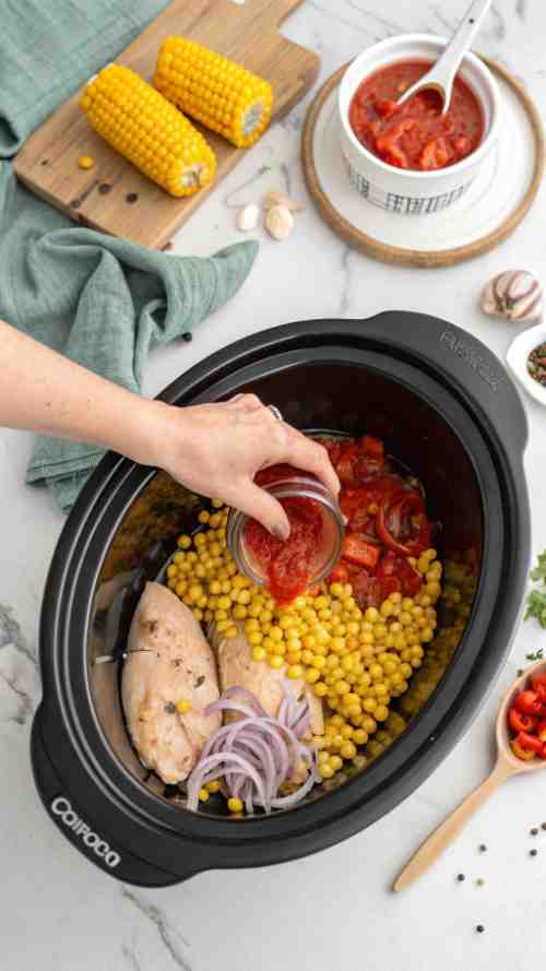 - Cook on LOW for 6–8 hours or HIGH for 3–4 hours until chicken is fully cooked and tender.