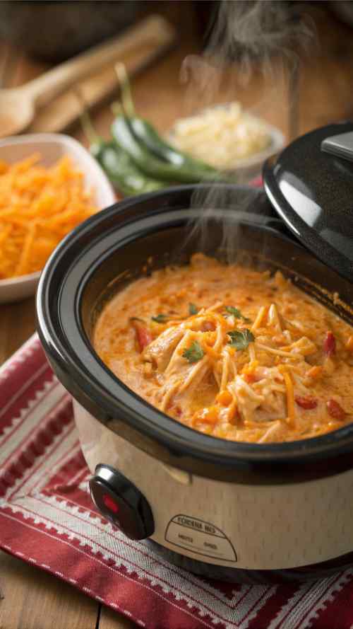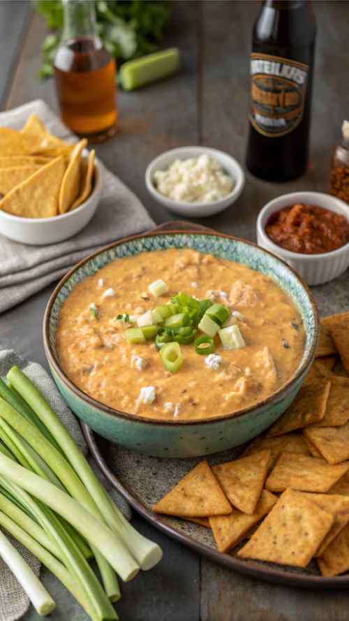 Once it’s done, give it one last stir and sprinkle some chopped green onions on top if you’ve got them (it adds a nice little crunch and color!). Now it’s ready to serve. I like to dish it out with tortilla chips, crackers, or veggies—anything that will scoop up all that cheesy goodness!