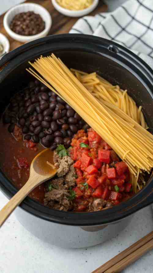 If you’ve ever wanted a super simple meal that’s still delicious and satisfying, Crockpot spaghetti is definitely the answer. This recipe for Crockpot Mexican Spaghetti is one of my favorites because it’s full of flavor, packs in some hidden veggies (thanks to those black beans), and most importantly, it’s easy. Plus, cooking spaghetti in a Crockpot means you don’t even have to worry about boiling pasta separately—just dump everything in and let the magic happen. It’s basically like Crock Pot Baked Spaghetti, but with a Mexican twist, and trust me, your family is going to love it.