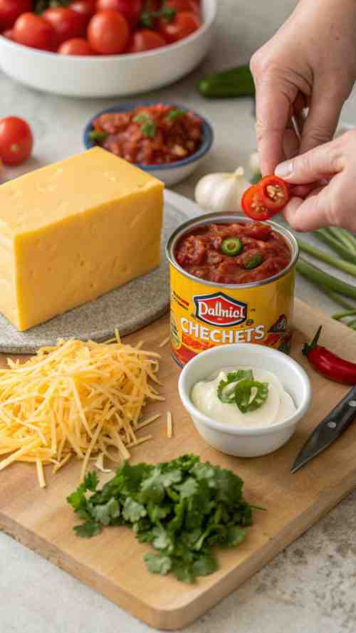 - 1 can 10 oz diced tomatoes with green chilies (like Rotel)