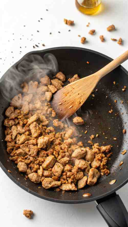 Yes, you can use ground chicken, ground beef, or even ground pork if you prefer. The cooking steps stay the same, just make sure to cook it fully before adding the veggies.
