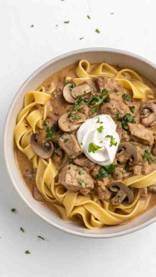 Ground turkey stroganoff is that kind of meal that hugs you back. It makes the house smell like someone worked hard when really you just wanna nap. If you try it, tell me if your family loves it too.