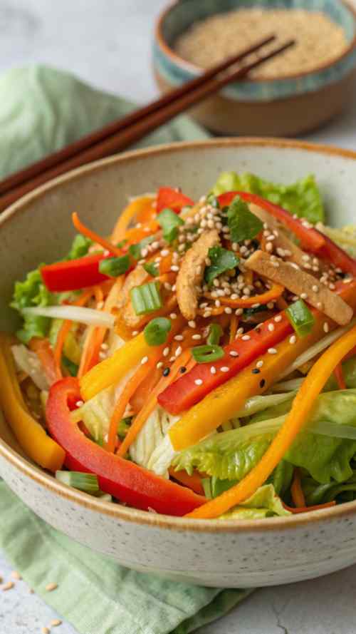 - In a small bowl, mix soy sauce, rice vinegar, honey, and sesame oil to make the dressing.
