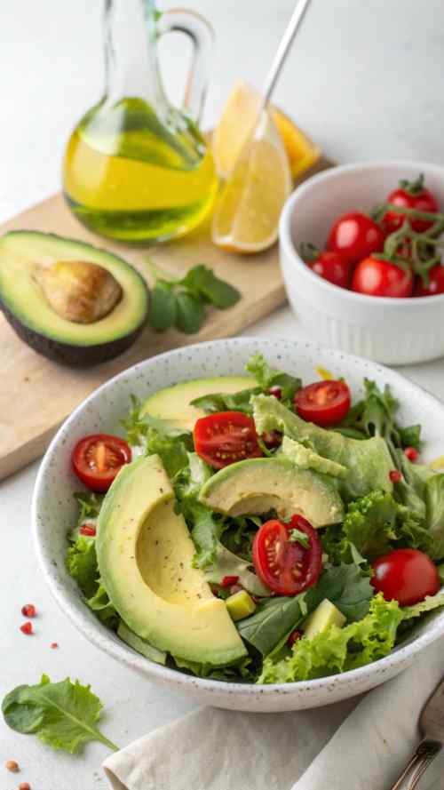 I love adding avocado to salads because it makes them creamy and filling. This one is super light, but the avocado gives it a nice richness. It’s a perfect side dish for grilled meats.