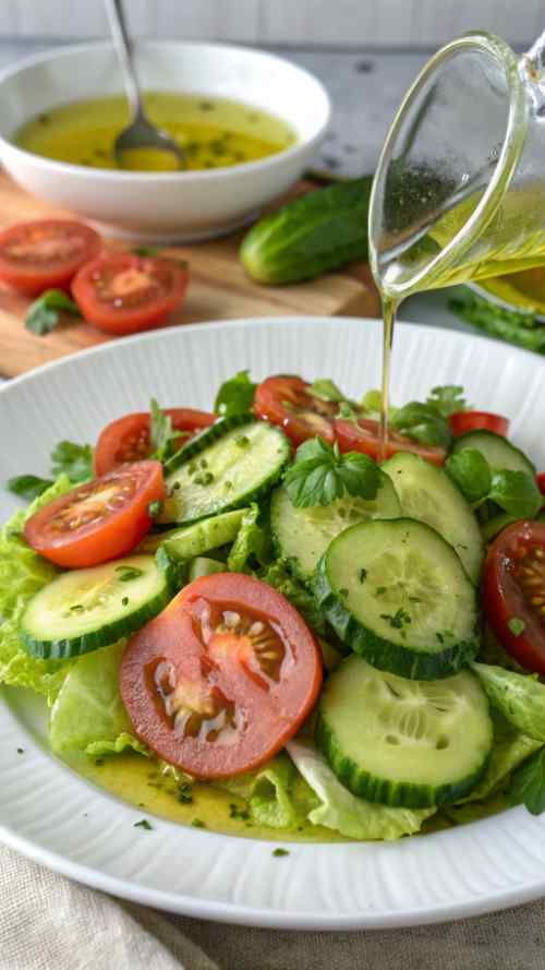 - Toss the lettuce, tomato, and cucumber in a bowl.
