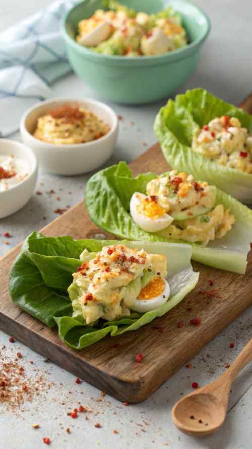Egg salad is so simple but satisfying. I love putting it in lettuce cups instead of bread for a lighter, crunchier option. It’s also great for a quick breakfast or lunch!