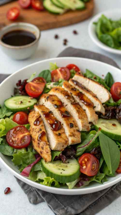 This salad is one of my go-tos for a healthy, filling meal. The grilled chicken adds a nice smoky flavor, and the fresh lettuce is perfect for balancing everything out. It’s an easy dinner that doesn’t take too much time!