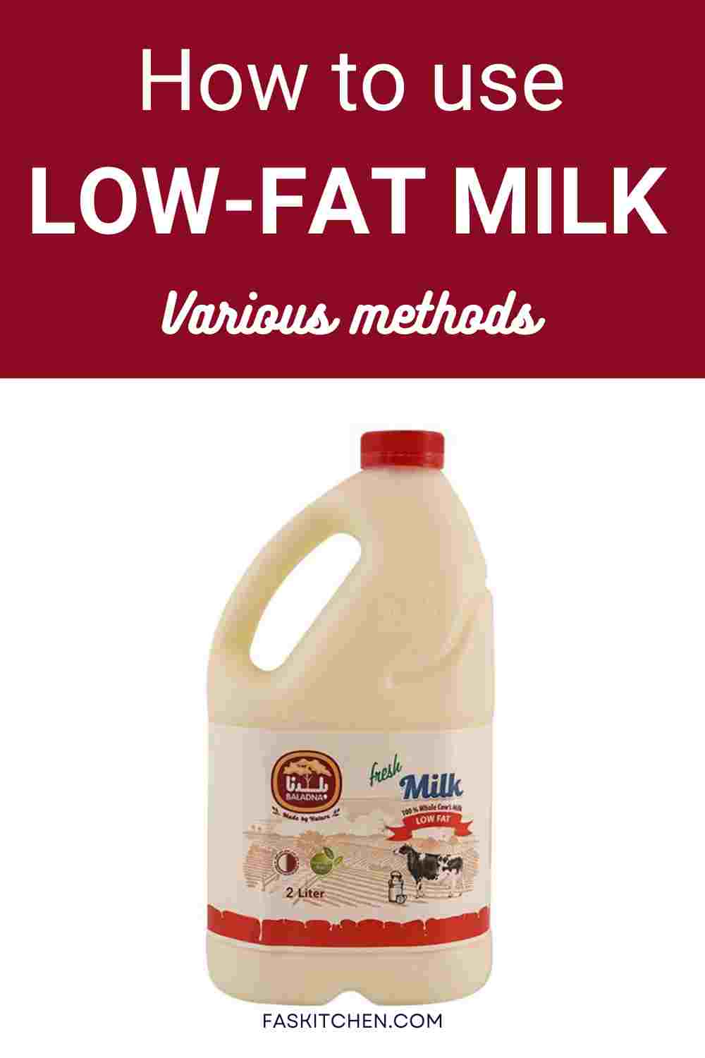 - In Baking – You can use low-fat milk in baking recipes instead of whole milk. It works just the same in things like pancakes, muffins, or cakes but with fewer calories and fat.