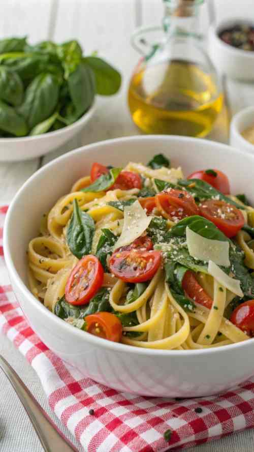 - Stir in the spinach and cook for 3–4 minutes until wilted.