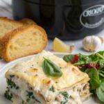 Crockpot White Lasagna with Chicken and Spinach. It’s one of those meals that make me feel all warm and cozy inside, and it’s super easy to make, which is a win for this busy mom of three! Plus, it’s a big hit with my kiddos, so I thought I’d share it with you. If you’re lookin' for a dish that’s comforting, cheesy, and just feels like a big hug in a bowl, this is it. This white lasagna is a twist on the classic. Instead of tomato sauce, we’ve got this creamy, cheesy white sauce, and then it’s loaded with tender chicken and spinach (which is a sneaky way to get the kids to eat some greens – yay!). And the best part? It’s made in the crockpot, so you can basically set it and forget it while you’re running around doing all the mom things.